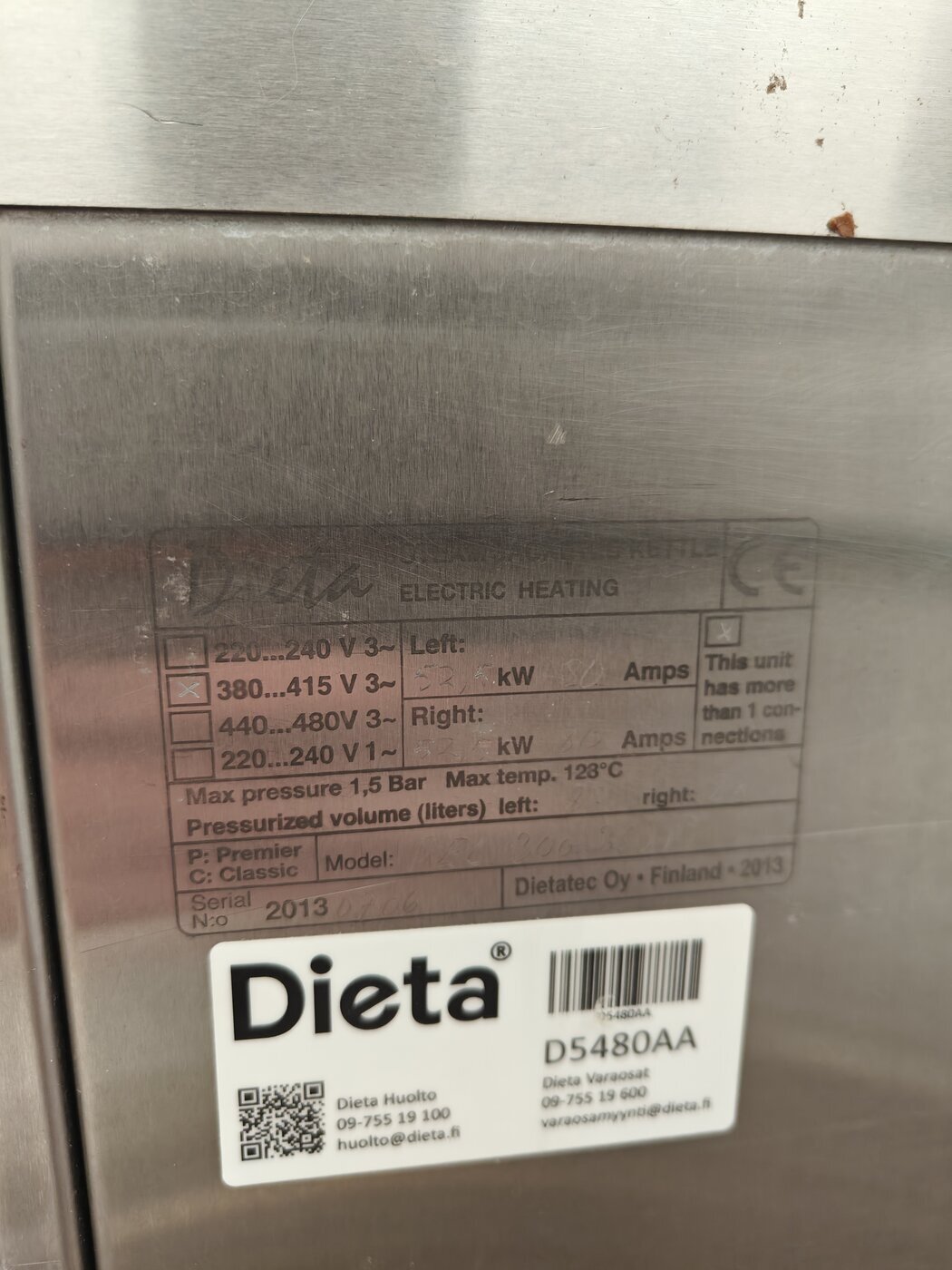 Sähköliitäntä: 400V 3N~ (vaatii erilliset syötöt molemmille padoille)