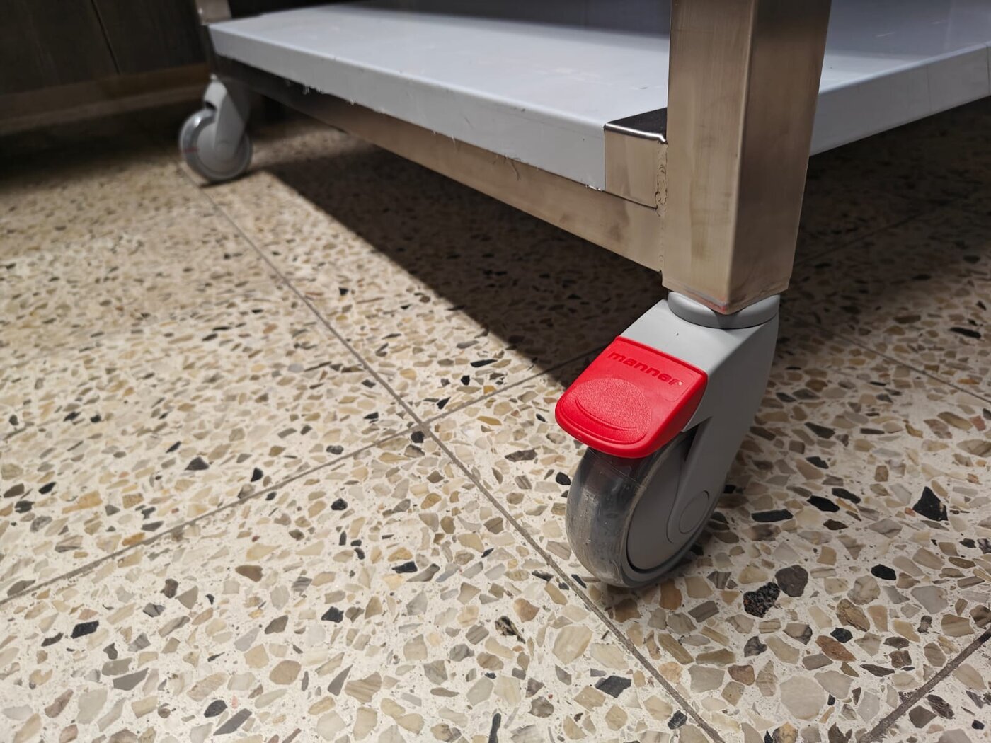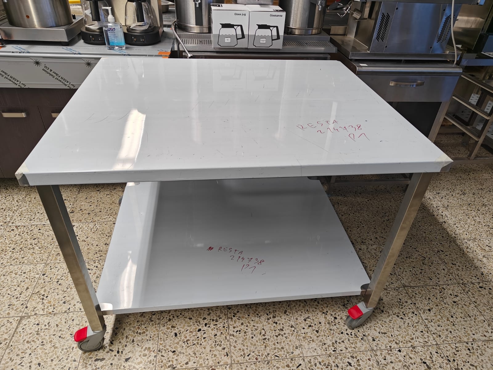 Uusi RST-tasopöytä alatasolla ja pyörillä, joista kaksi lukittavaa.